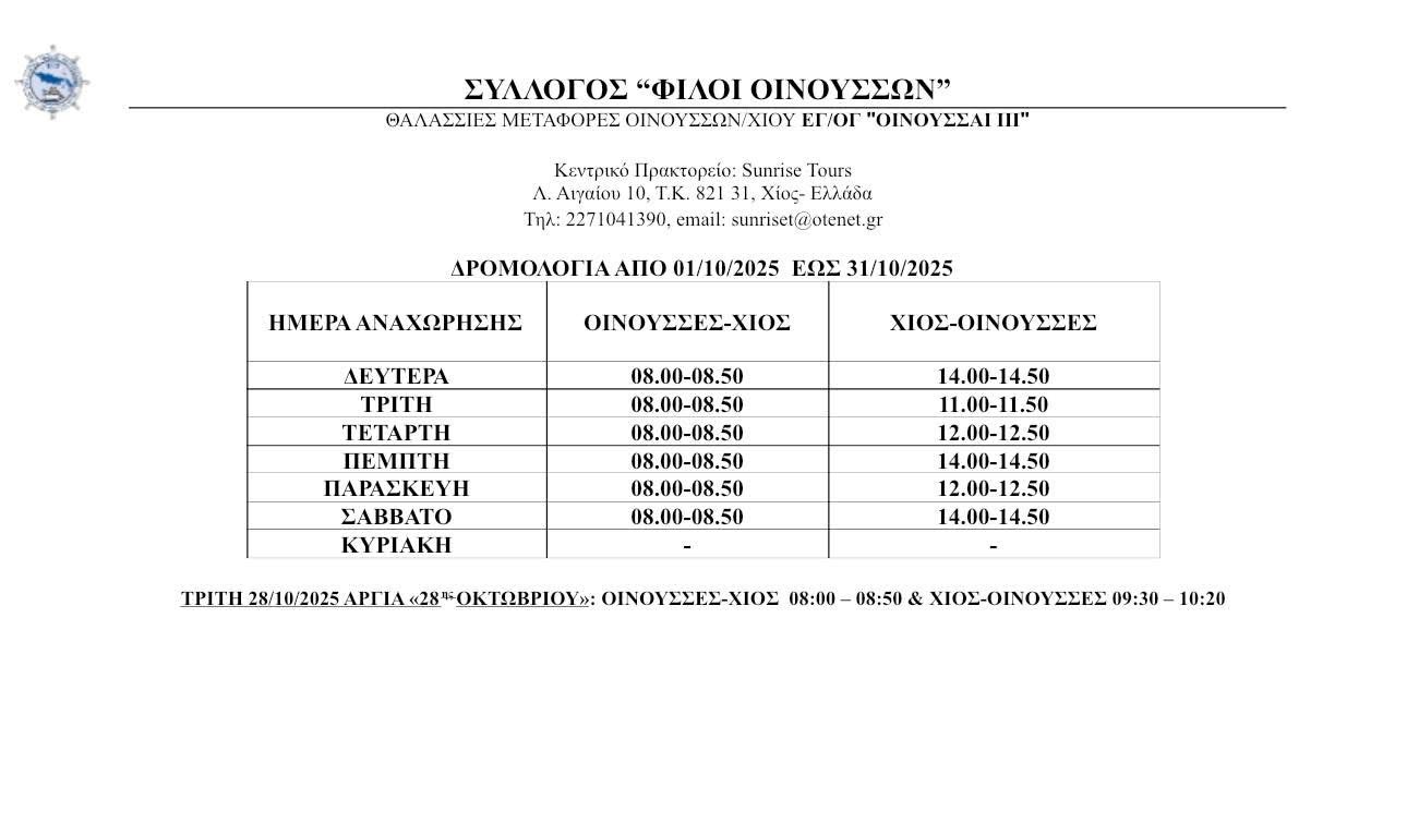 Χειμερινά Δρομολόγια ΟΙΝΟΥΣΣΑΙ ΙΙΙ