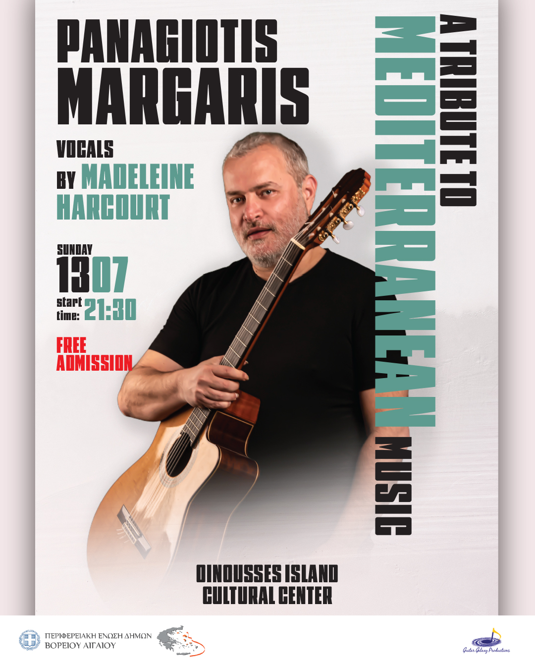 Οι Οινούσσες φιλοξενούν τον διεθνούς φήμης κλασικό κιθαρίστα και συνθέτη Παναγιώτη Μάργαρη, ο οποίος παρουσιάζει το νέο του μουσικό εγχείρημα με τίτλο «Μεσόγειος», στο πλαίσιο των καλοκαιρινών εκδηλώσεων του Δήμου.